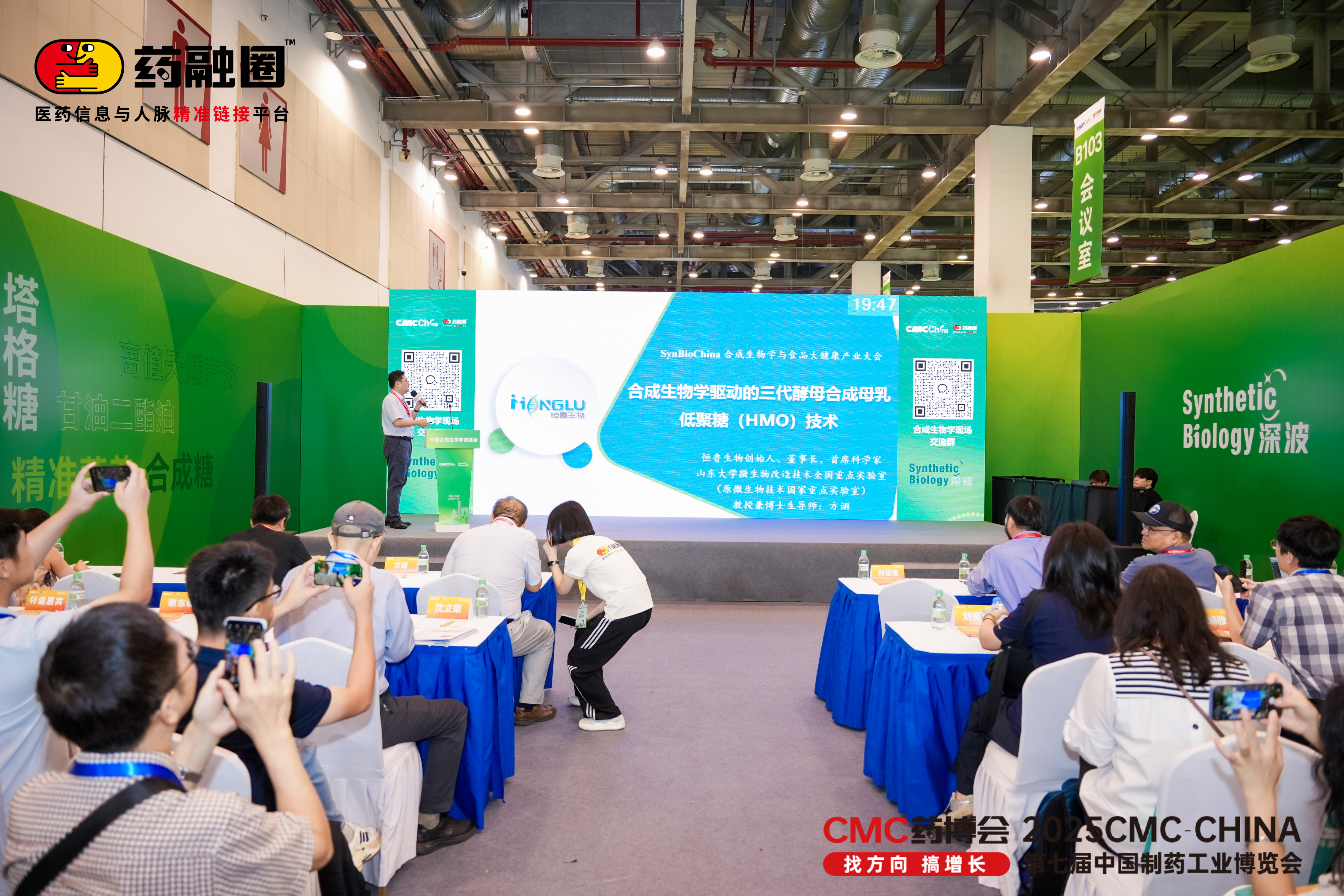 在博览会备受瞩目的“Synbio China合成生物学与食品大健康产业大会”上,方诩教授发表了题为“合成生物学驱动的三代合成母乳低聚糖(HMOs)技术”的演讲,向业界深入阐述了恒鲁生物具有里程碑意义的技术突破。采用完全自主研发的第三代酵母合成HMOs技术,其核心优势在于:无抗生素依赖、无需IPTG诱导、无质粒,且生产过程绿色环保!尤为关键的是,该技术选用列入益生菌目录的乳酸克鲁维酵母作为安全底盘细胞,并以源于安全菌株的芽孢杆菌作为供体,在全球范围内首次实现了基于酵母的HMOs规模化生产并获得国内外权威机构的广泛认可。这一“安全底盘+安全供体”的合成技术路线,是恒鲁生物在全球范围内的创新突破。