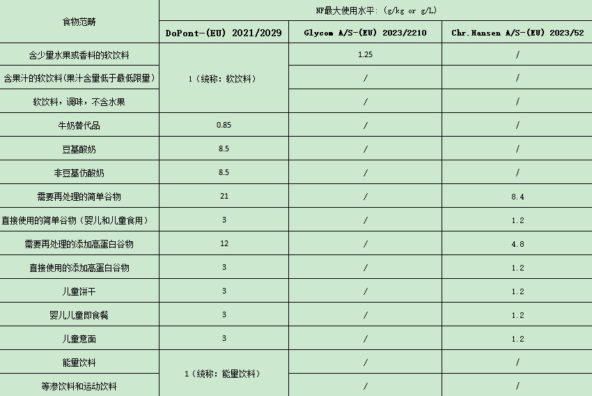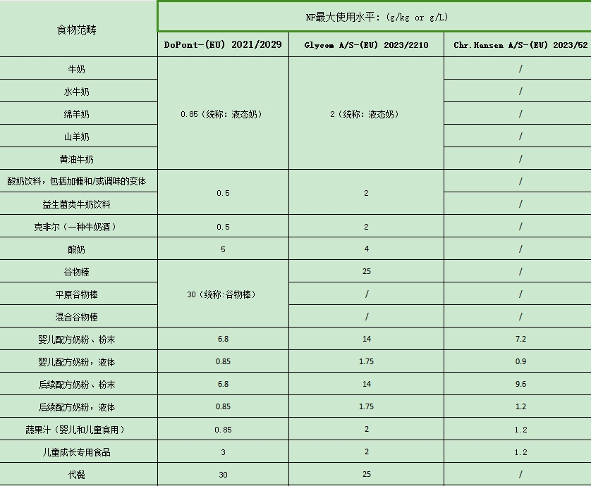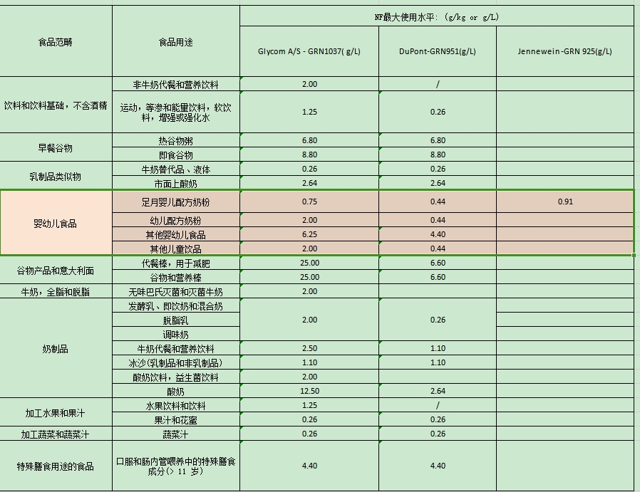 图1欧盟新食品:已获批的3-FL的用途和用量