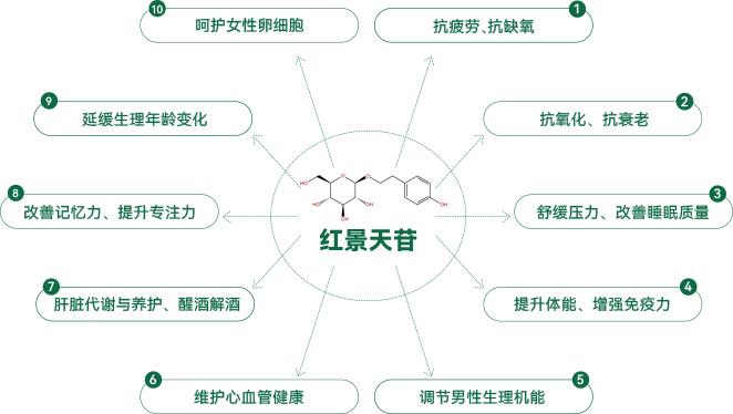 红景天苷通过多靶点作用和多重机制调节身体能量和肌体平衡,科学研究证明其核心机理主要来自于以下几个方面: